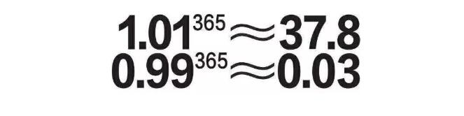 這里有一個公式,如果把0.09和1.01分別看做一個人,在一年365天同樣的時間里,你愿意做哪一個?是做0.99還是做1.01?想必大多數人都會選擇做1.01!但是,現實生活中,我們大多數人卻并不會真的能做到那個1.01!為什么呢?因為倦怠,因為懶惰,因為滿足于當下,因為取得了一點點的進步就沾沾自喜,固步自封!